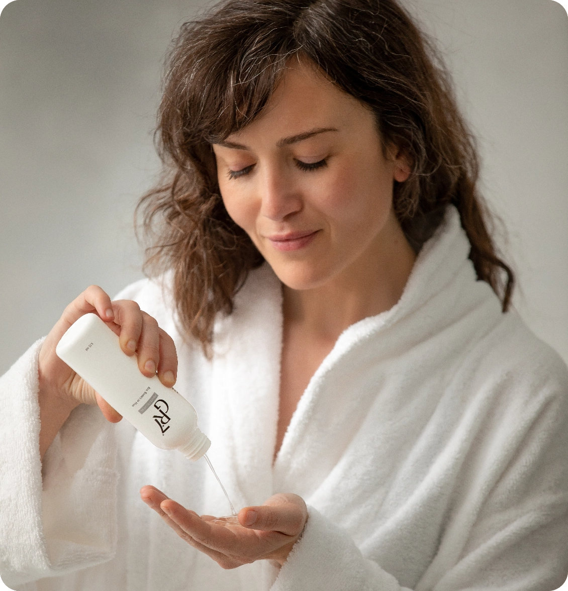 Step 1 | Agita bene la bottiglia e applica tutti i giorni (anche due volte al giorno) una quantità di lozione sufficiente a coprire tutto il cuoio capelluto.
